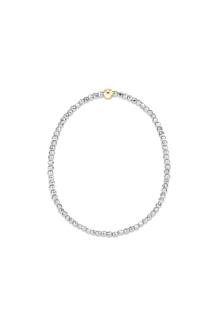 Made with 2mm silver faceted hematite beads Worry-free wear‚ which means sleep, shower and sweat in it Hand beaded on high performance elastic for a slight stretch to easily roll on and off your wrist Measures 6.25" Stacks well with...